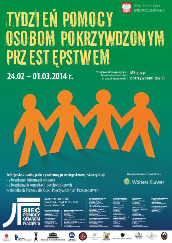 Od 24 lutego – 1 marca 2014 r. trwał będzie „Tydzień Pomocy Osobom Pokrzywdzonym Przestępstwem”. W tym roku każdy zainteresowany będzie mógł zgłosić się o poradę w dniach