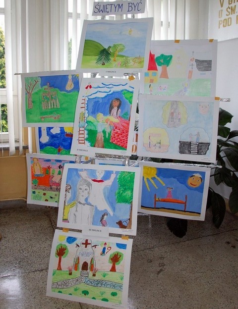 Celem konkursu plastycznego była integracja uczniów klas IV-VI poprzez wspólne działania twórcze. Każdy z uczestników wykonał pracę na temat „Taki duży, taki mały, może świętym być…” – nasza droga do nieba. Wszystkie dziecięce obrazki zostały umieszczone na drabinie Jakubowej symbolizującej ludzkie dążenie do świętości. W zmaganiach konkursowych najlepsza okazała się Oliwia Żak (SP w Rupniowie), II miejsce zajęła Anna Musiał (SP w Starej Wsi II), zaś na III miejscu uplasowała się Zuzanna Szewczyk (SP w Mordarce).