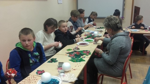 Wszystkie z wielkim zapałem i radością wykonywały bombki, twierdząc, że są bezcenne, gdyż w ich wykonanie włożyły swoje serca. Podczas swojej pracy uczestniczki zastanawiały się, czy rozpoznają misternie wykonane przez siebie ozdoby świąteczne na choinkach podczas Powiatowego Przeglądu Kolędniczego, który odbędzie się w tej szkole. Propozycje bombek przedstawione przez prowadzące warsztaty przypadła do gustu wszystkim uczestnikom.