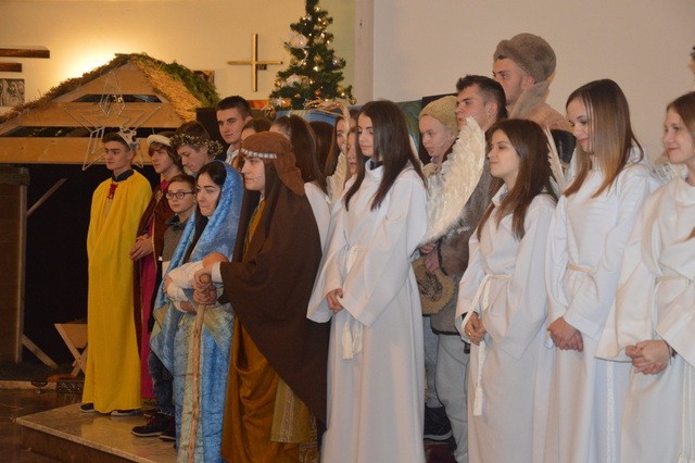 Już po raz kolejny bezpośrednim przygotowaniem do uroczystej mszy Bożonarodzeniowej zwanej w tradycji polskiej Pasterką jest inscenizacji treści biblijnych związanych z faktem narodzenia Jezusa Chrystusa. W aktorów przedstawiających klimat z przed ponad 2000 lat wcielili się członkowie grupy młodzieżowej z parafii Stara Wieś pod przewodnictwem wikarego tej parafii ks. Pawła Strzygła. W dobie komercjalizacji świąt Bożego Narodzenia sprowadzonych w różnorakich kampaniach reklamowych wyłącznie do konsumpcji warto odświeżyć sobie ten najważniejszy fakt w dziejach historii świata i człowieka jakim jest Narodzenie Jezusa. Oglądając te sceny warto sobie zadać pytanie czy przyjście Jezusa Chrystusa ma dla mnie znaczenie, czy ono wywiera wpływ na moje życie. Czy przypadkiem nie staje po stronie tych obojętnych, którzy również 2000 lat temu poskąpili miejsca skazując Święta Rodzinę na szopę pasterską w której narodził się Zbawiciel świata Jezus Chrystus. Uwieńczeniem jasełek Bożonarodzeniowych była msza św. o północy sprawowana w koncelebrze pod przewodnictwem Proboszcza parafii ks. Prałata Mariana Tyrki.