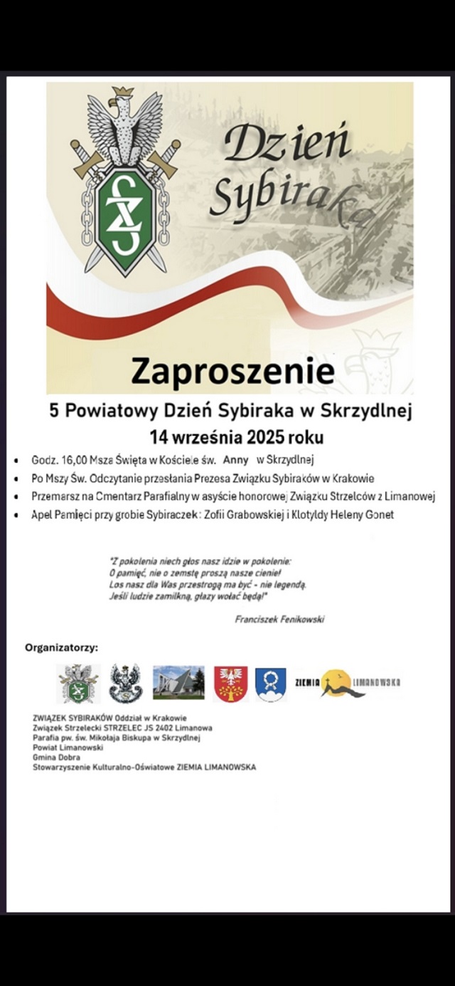 W dniu 14 września 2025 r. odbędę się 5 Powiatowe Dni Sybiraka