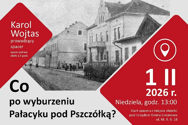 Serdecznie zapraszamy specjalny spacer historyczny po Limanowej po wyburzeniu Pałacyku pod Pszczółką w niedzielę 1 lutego 2026 r. godz. 13:00. Spotkamy się w miejscu wyburzenia Pałacyku by oddać cześć pamięci okrutnie torturowanych przez służby UB, SB, MO, ORMO patriotów ruchu oporu wobec utrwalania władzy ludowej po zakończeniu II wojny światowej. Spacer poprowadzi Karol Wojtas. Zabierzmy ze sobą polskie flagi..jpg)