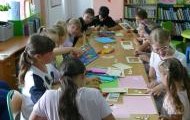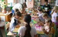 Ferie w bibliotece to również bogata oferta warsztatów plastycznych. Dzieci tworzyły ,,zimowe lampiony w słoiku” techniką decoupage, ,,zimowy krajobraz”, walentynkowe kartki i ozdoby, gipsowe serduszka, drewniane breloczki oraz własne wersje „Plastusiowego piórnika”. Zajęcia odbywały się w kilku filiach, a mali artyści wykazali się ogromną wyobraźnią i starannością. Powstałe prace zachwycały kolorami i pomysłowością, a uczestnicy z dumą zabierali je do domów.