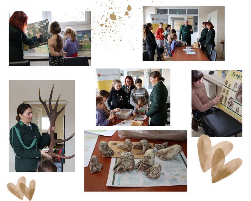 Ważnym punktem programu były spotkania przyrodnicze, które odbyły się w filiach w Pisarzowej, Siekierczynie oraz Nowym Rybiu. Gośćmi były przedstawicielki kół łowieckich „Jaworz” i „Dzik”, które w przystępny i pełen pasji sposób opowiadały o życiu dzikich zwierząt zamieszkujących nasze lasy. Dzieci mogły z bliska obejrzeć poroża sarny i jelenia, poznać różnice między tymi gatunkami oraz dowiedzieć się, jak rozpoznawać tropy pozostawione na śniegu i w piasku. Nie zabrakło zagadek, ciekawostek oraz rozmów o tym, jak dbać o przyrodę zimą i dlaczego dokarmianie zwierząt powinno odbywać się z rozwagą. Spotkania miały charakter interaktywny – najmłodsi chętnie zadawali pytania i dzielili się własnymi obserwacjami z leśnych spacerów.